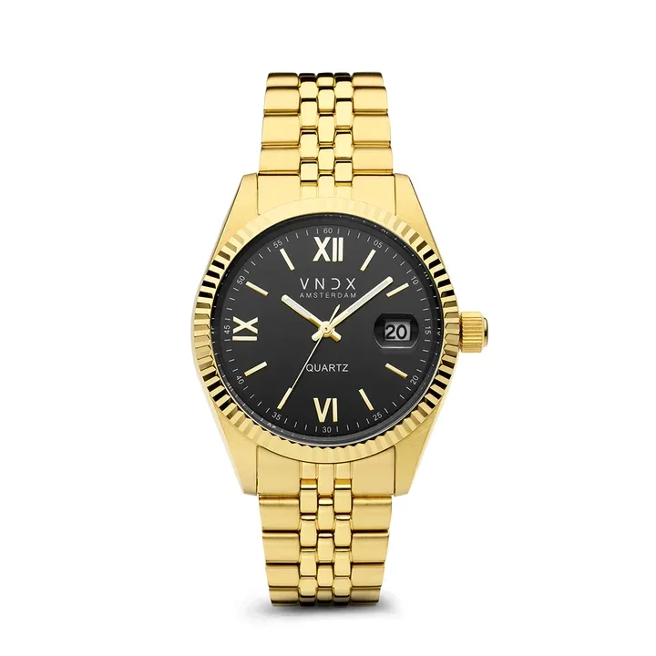 Met zijn tijdloze ontwerp en schitterende zwarte wijzerplaat voorzien van een gouden index en datumaanduiding, straalt de Dare Devil XL klasse uit. Of je nu van feesten houdt of ‘s nachts op avontuur gaat, de lichtgevende wijzers zorgen voor een “Glow in the dark” effect, zodat je ook in het donker op tijd bent.